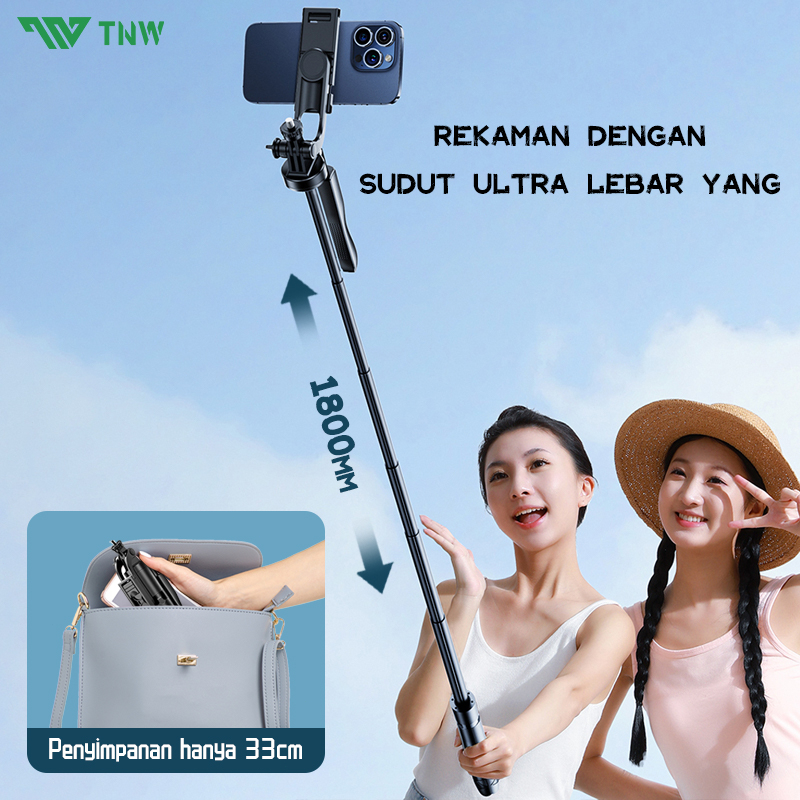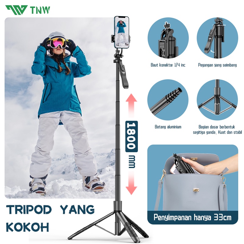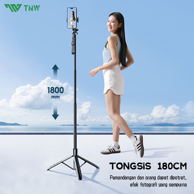 Tnw L18 Tongsis Bluetooth 1.8M Tongsis Tripod Remote 180Cm Selfie Stick Tripod Handphone Untuk Kamera Hp