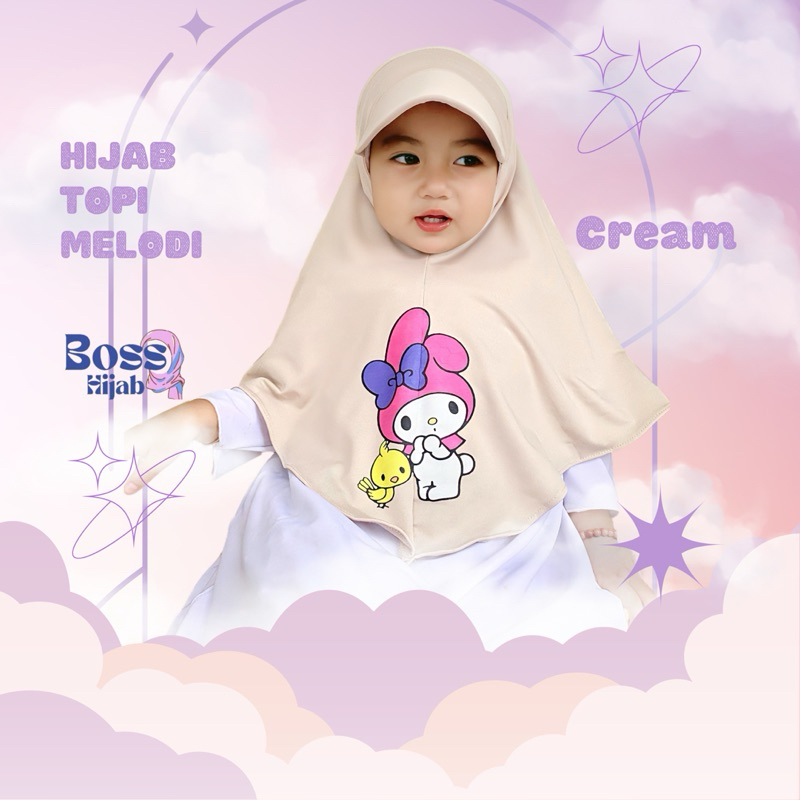 HIJAB TOPI ANAK usia 1 2 3 4 5 6 7 sampai 8 tahun KARAKTER MELODY, hijab topi sport anak lucu