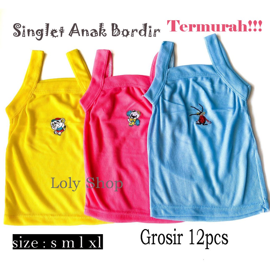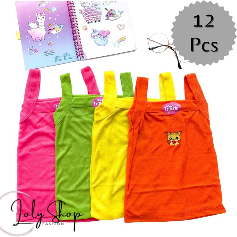 12 Pcs Singlet Anak Perempuan BORDIR / Grosir Singlet Anak Murah