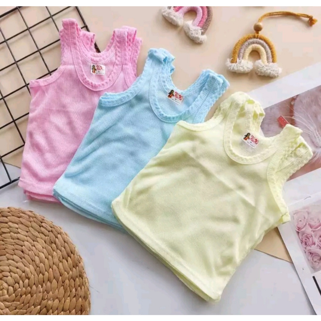 12 pcs kaos Dalam Bayi & Anak Singlet Warna-warni Polos Murah