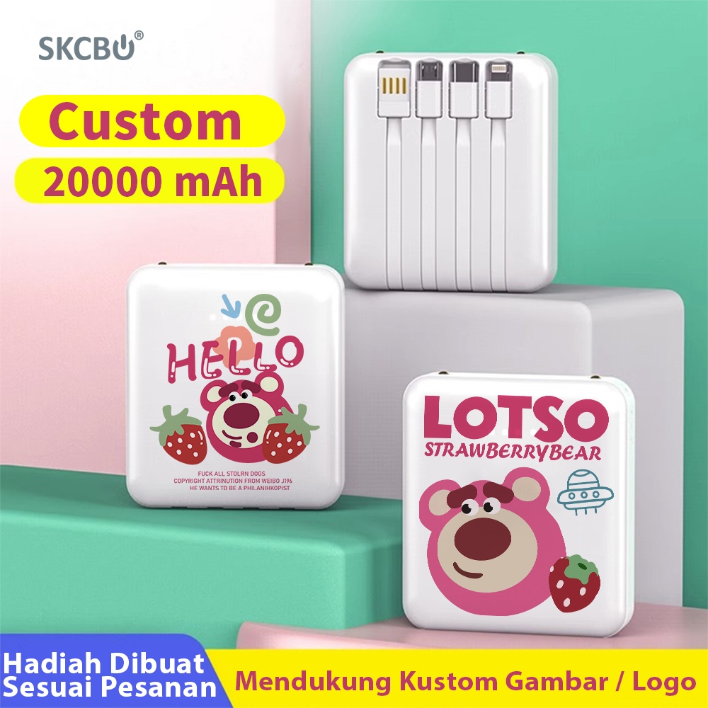 Skcbo Lotso Powerbank Custom 20000Mah Led Kustom Power Bank Built In Cable Murah Lucu Mini Ori For Iphone Type-C Micro