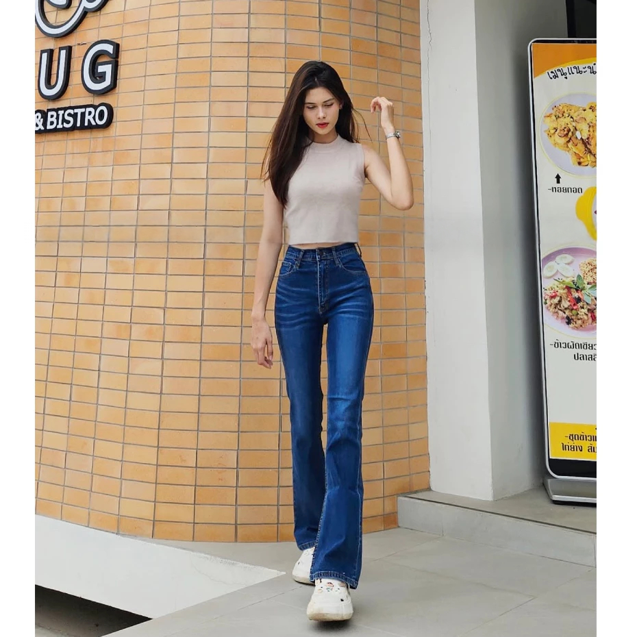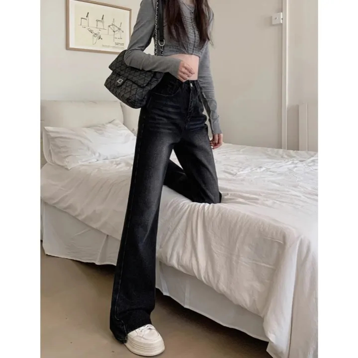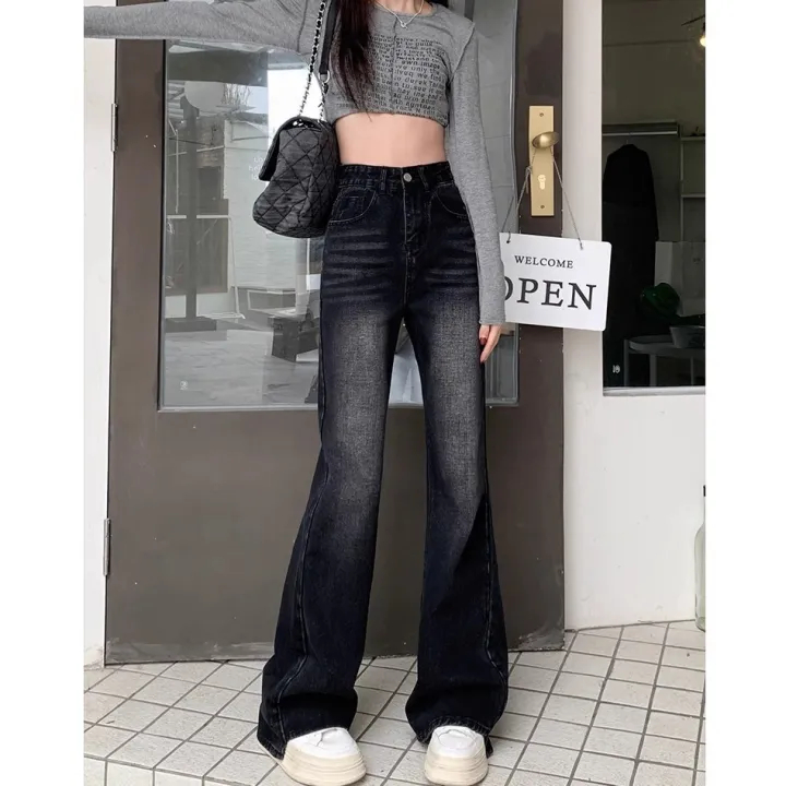 Highwaist Cutbray Jeans Stretch Retro Wanita - Celana Cutbray Retro Hitam Vintage Denim Premium Murah Gratis Ongkir