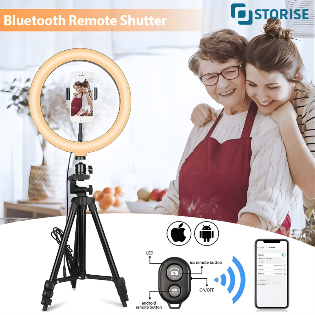 Storise Ring Light 26Cm + Tripod 1 Meter [ 1 Set ] Bluetooth Lampu Ringlight Vlog Konten Make Up