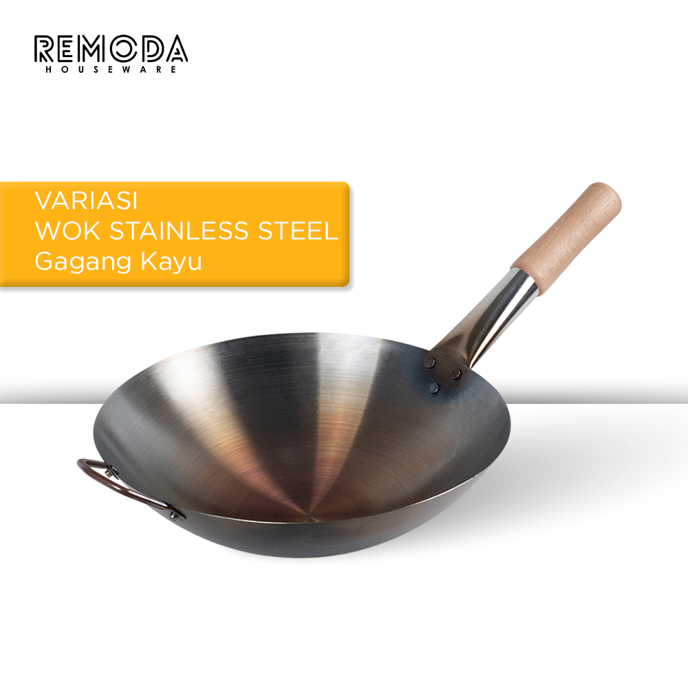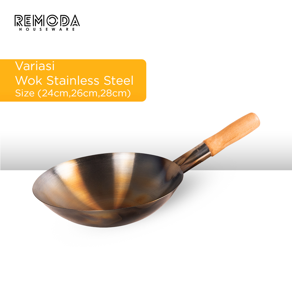 Calypso Onomane Wok Kuali Wajan Penggorengan Sudah Seasoning Anti Lengket 24-40cm Stainless Steel