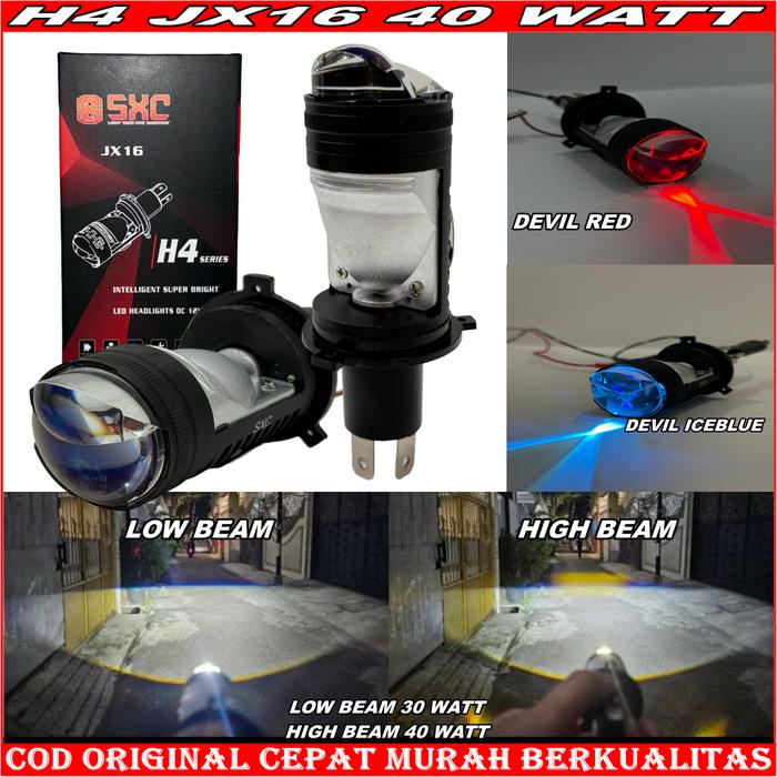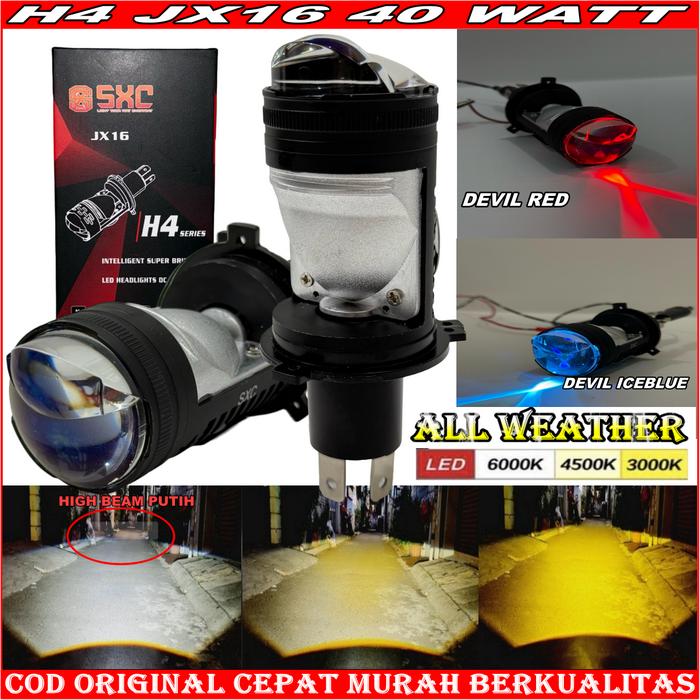 Lampu Utama H4 Led Jx21 40 Watt New Upgrade Premium Merk Sxc High Low Ac Dc H4 Mini Projie Cahaya Biled H4 - Jx16 Putih
