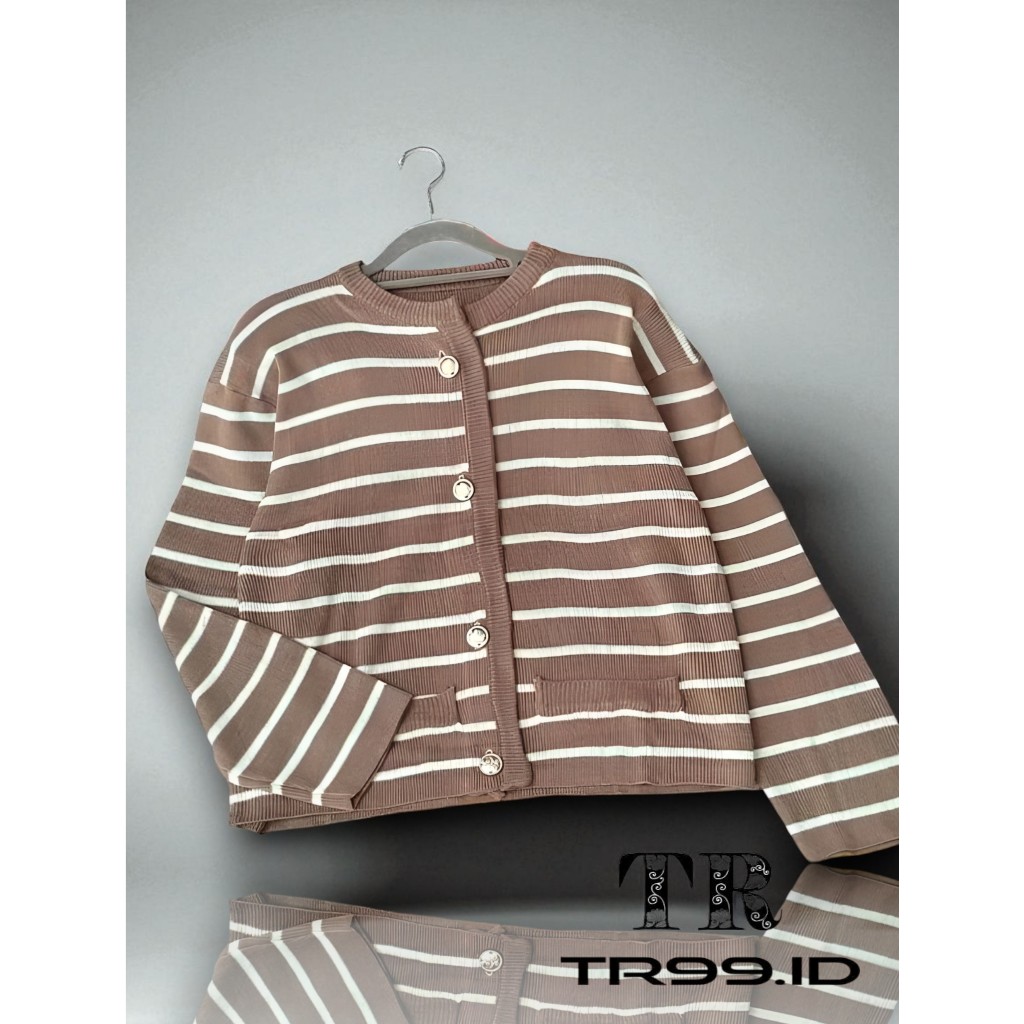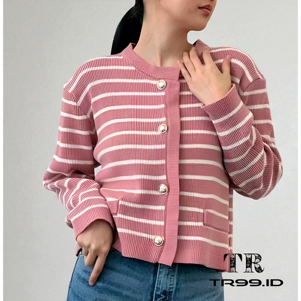 Cardigan [Cessy Cardy Strip Semi Crop] Knitwear Rajut Wanita Korea