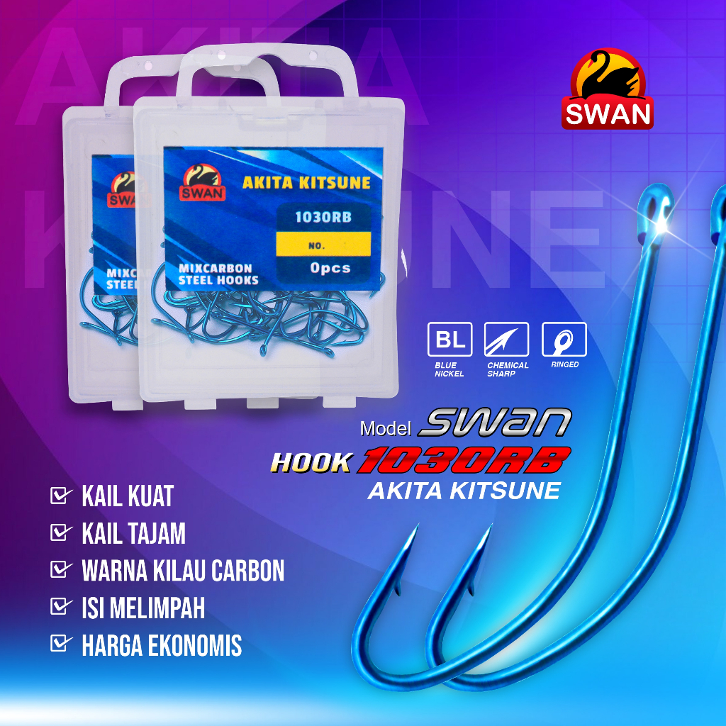 Hook/Kail Pancing Kotak Mika Swan AkitaKitsune Blue 1030RB, No 1(kecil) - 15(Besar), Kail Biru