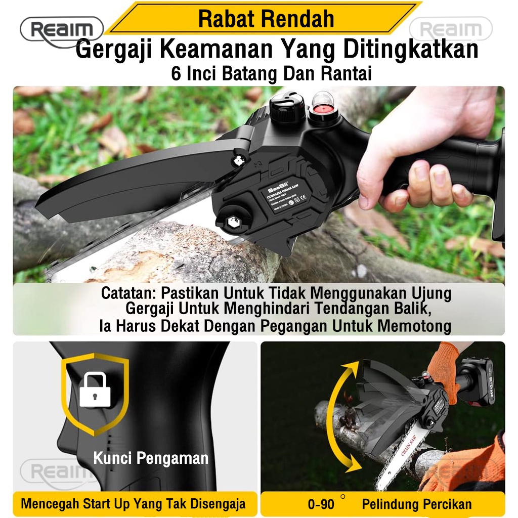 Reaim Mesin Chainsaw 6 Inch Cordless Chainsaw Pemotong Kayu Gergaji Listrik Gergaji Baterai Gergaji Rantai Elektrik Mini