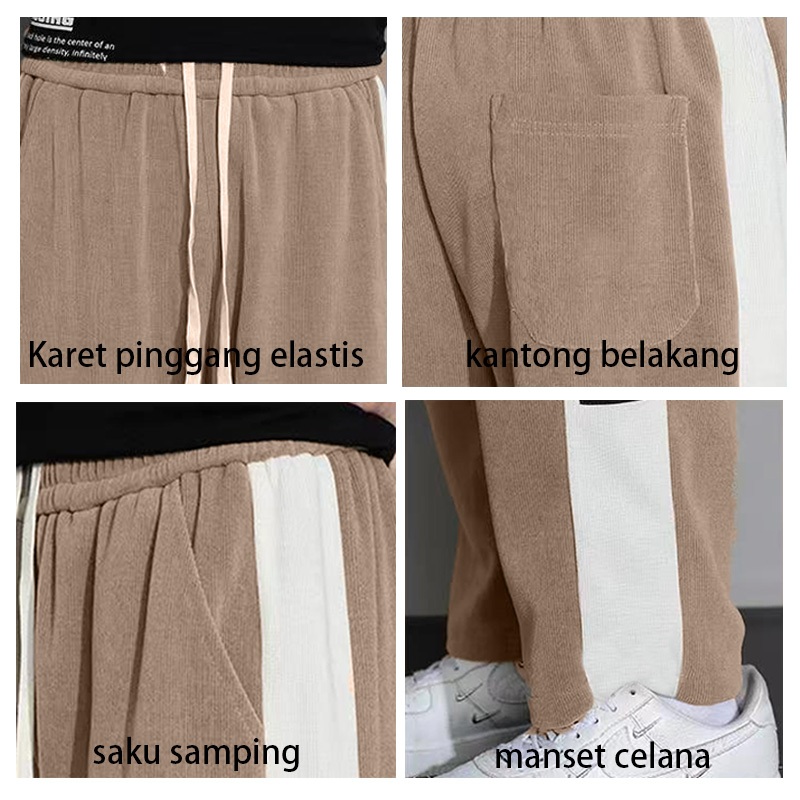 KeyBoy celana panjang pria corduroy baggy straight causal dewasa pinggang karet pants korean style Murah Gratis Ongkir
