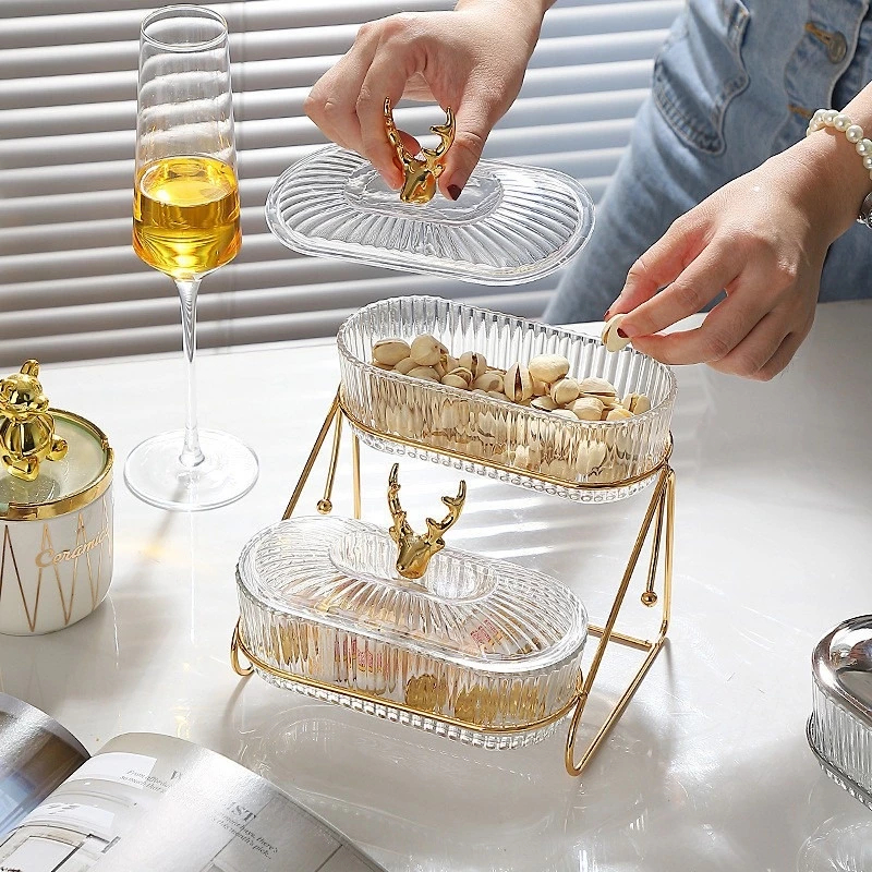 2/3 Susun Piring Buah Multi layer Toples Tempat Buah Snack Makanan Ringan Wadah Buah dengan Tatakan