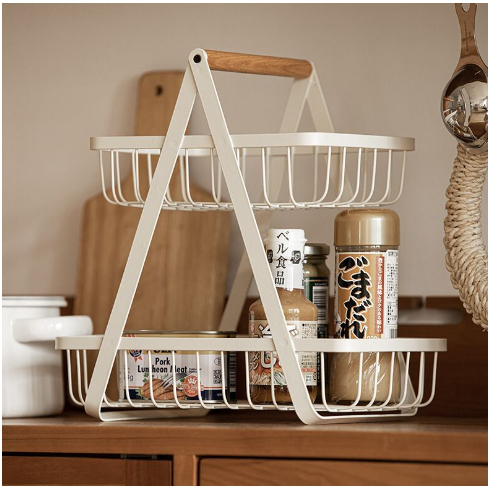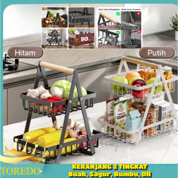 TOREDO L4 Keranjang Buah Besi Kayu Rak Dapur Serbaguna 2 Tingkat Bawang Buah Sayur Estetik