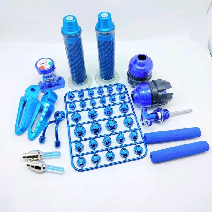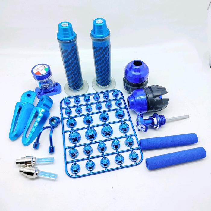 PAKET HONDA BIRU HANGRIP KARBON+ JALU STANG+ JALU AS+ STEMPEL KACA+ FOSTEP SAMPING+GANTUNGAN+JARUM OLII+COVER BAUT+TUTUP