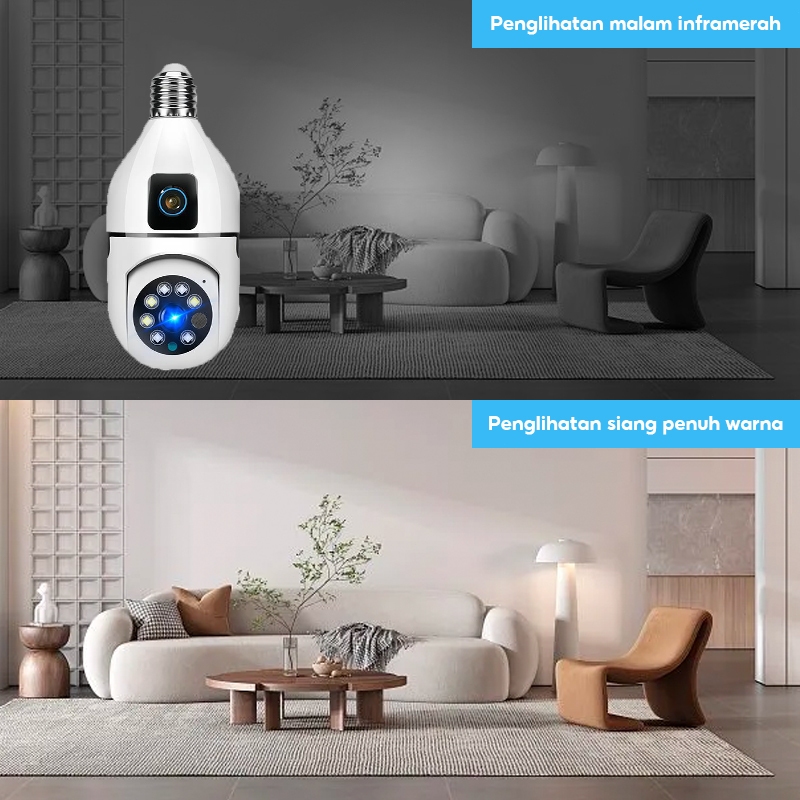 V380 E27A Cctv Indoor Dual Camera Hd2.4G/5G Wi-Fi Bulb Ptz Lensa Ganda Kamera Keamanan Audio Dua Arah