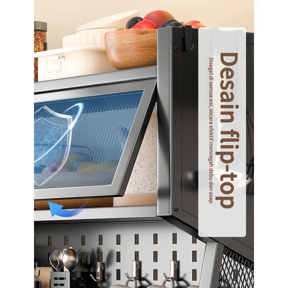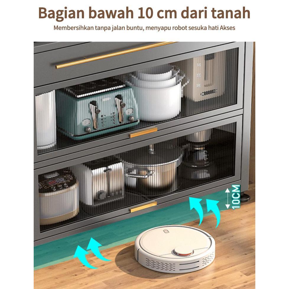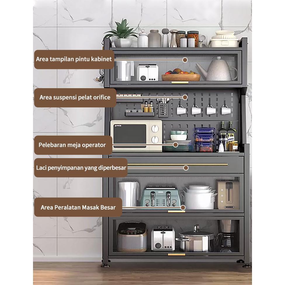 Rak Dapur Lemari Dapur Dengan Pintu Rak Penyimpanan Microwave Oven Rak Multi-Lapisan Lemari Piring Lantai Berdiri Rak