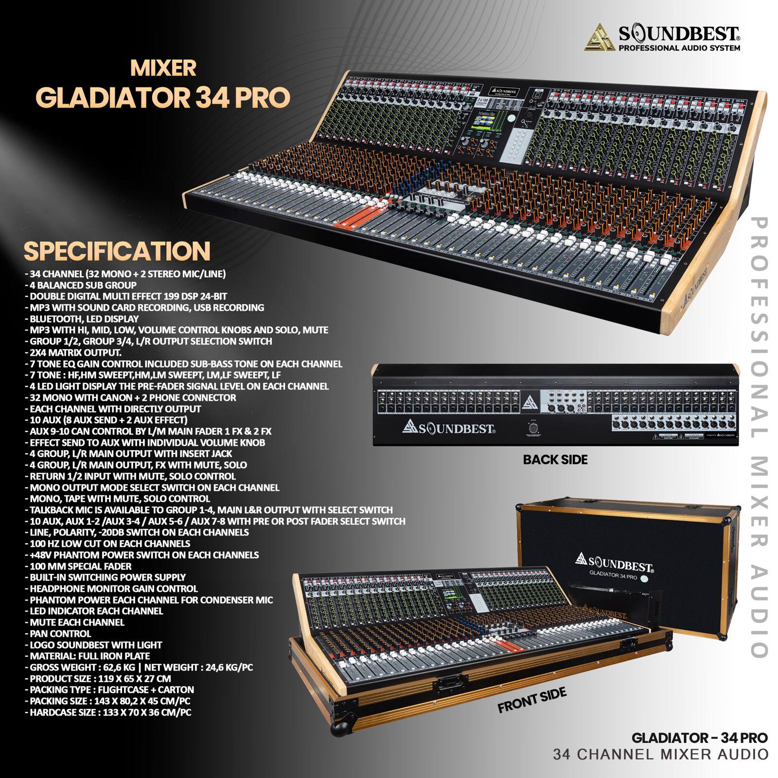 Mixer Soundbest Gladiator 34 PRO 34 Channel Original Gladiator 34Pro Free Hardcase