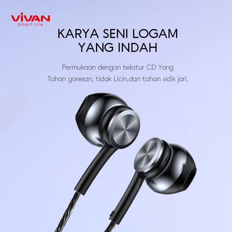 Vivan Headset Q12 Wired Earphone Metal Deep Bass Mic Konektor L 90 Audio Quality Garansi Original
