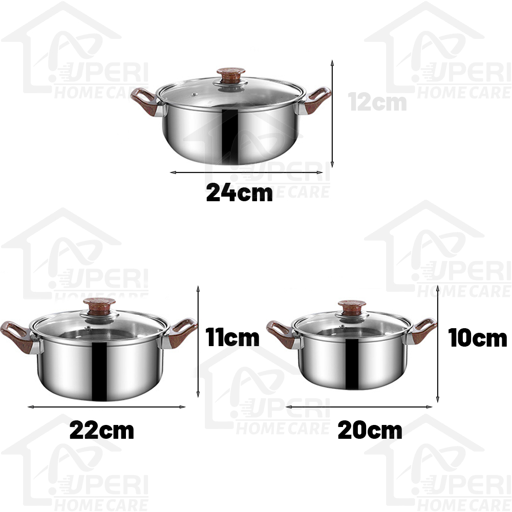 【UPERI】Panci sup sop soup pot stainless steel tutup kaca /Panci Sop Stainless Steel Soup Pot