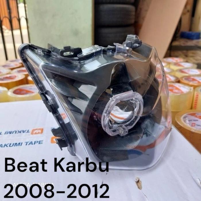 FULLSET REFLEKTOR LAMPU DEPAN PLUS BILED ALA ALA BEAT KARBU 2008 2012 2,5 INCI SUPER TERANG MOTORCYCLE - PUTIH BIRU, BEA