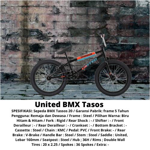 Sepeda Bmx - Bmx Bike United Tassos 20"/Steel - Hitam, 20