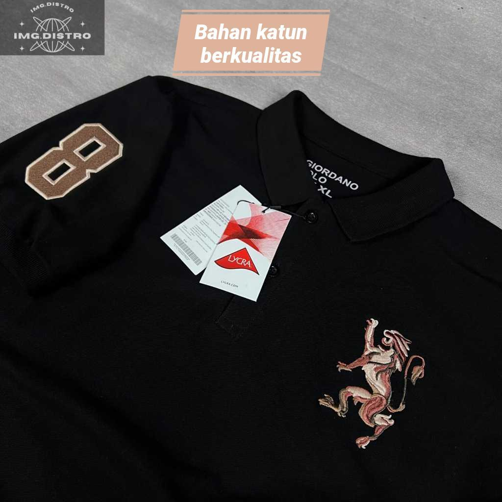 Polo Shirt GIORDANO 3D Lion Mens Shirt Kaos Krah For Man Bordir Bahan Katun Pique Diamond