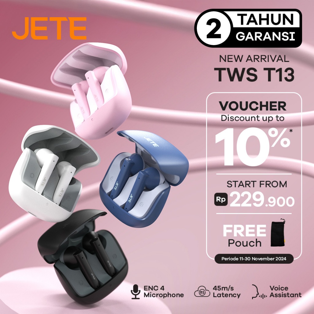 Tws Bluetooth Enc With 4 Mic Jete T13 Bt 5.4 Ipx5 Playtime 20H - Garansi 2Th