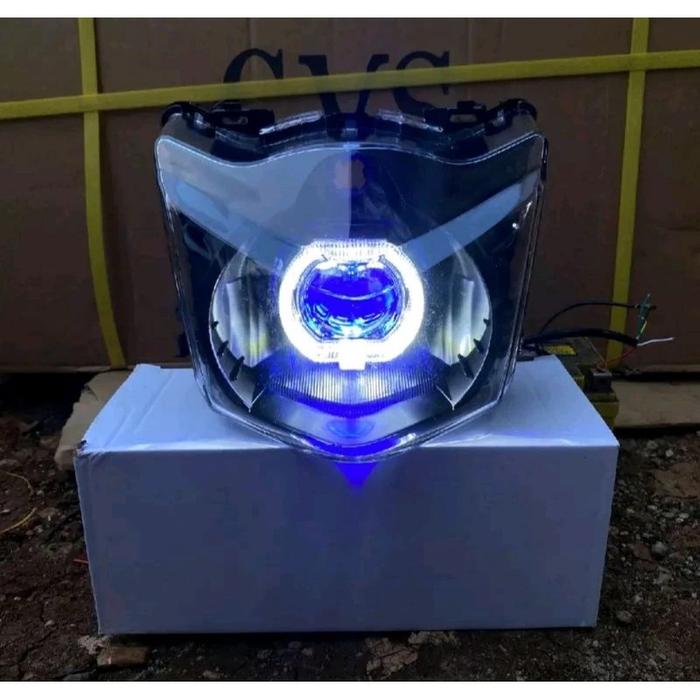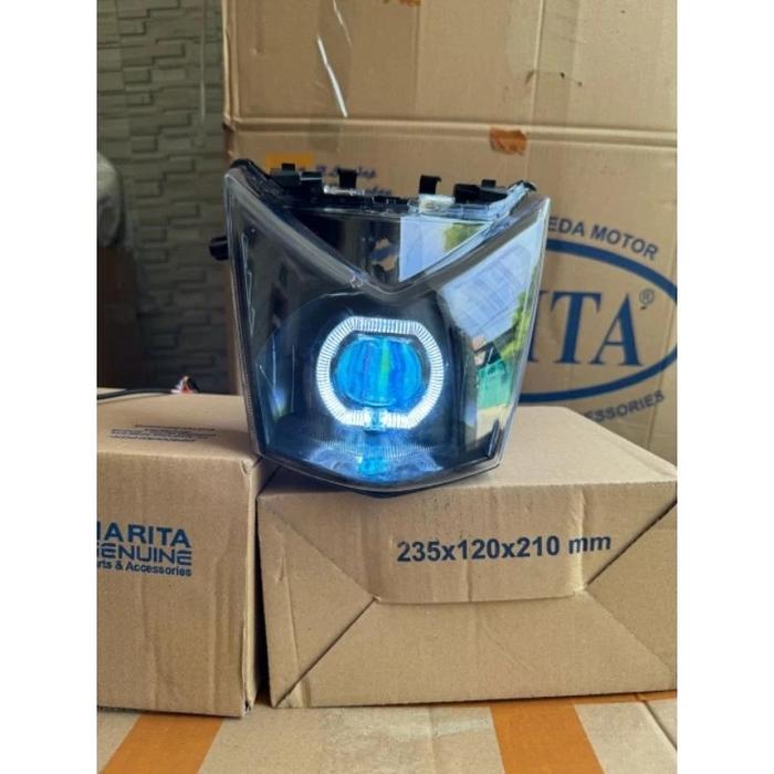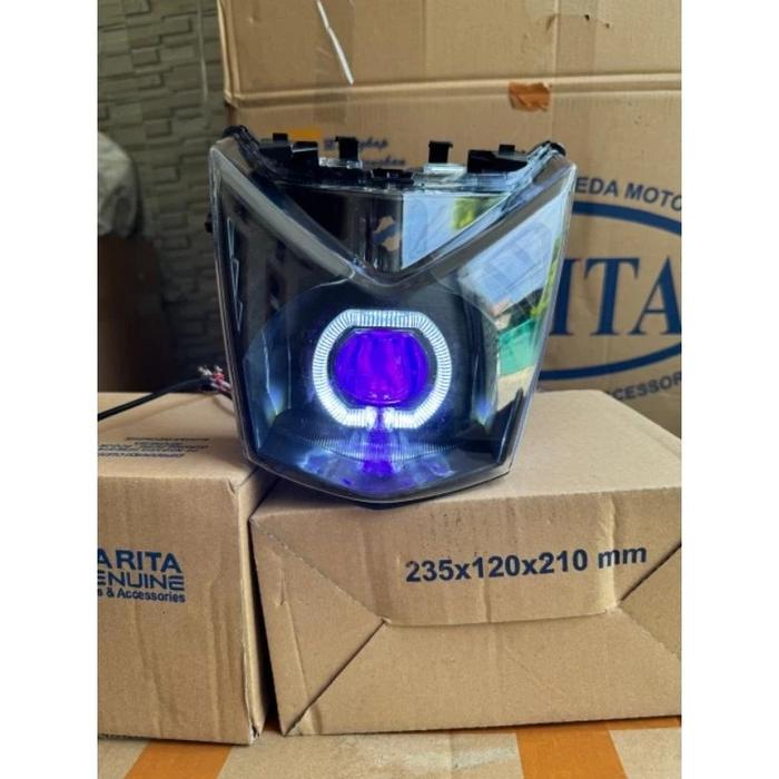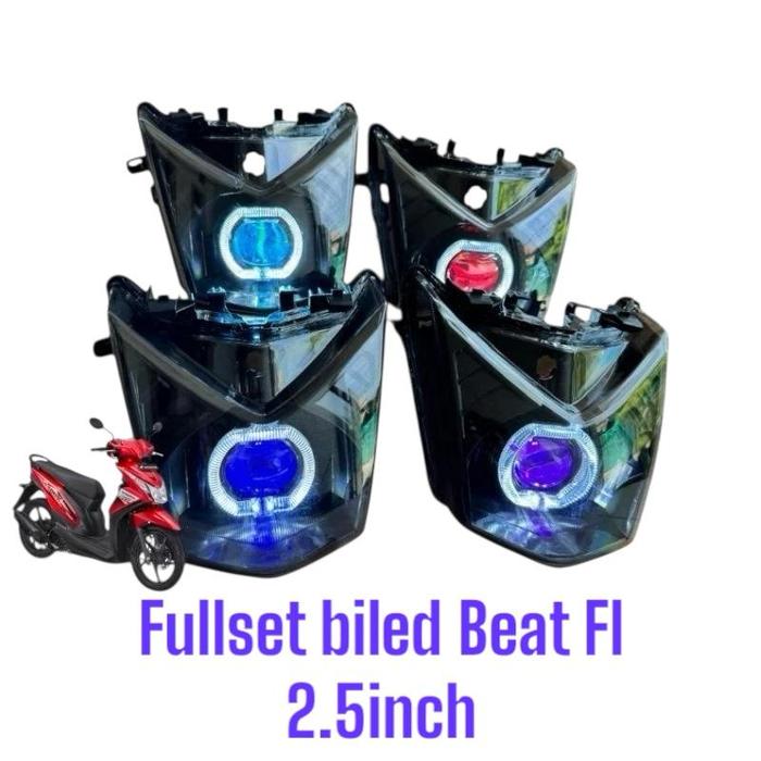 FULLSET LAMPU DEPAN REFLEKTOR BEAT FI BILED ALA ALA 2,5 INCI SUPER TERANG BEAT TAHUN 2013 - 2015 - PUTIH BIRU, BEAT FI 2