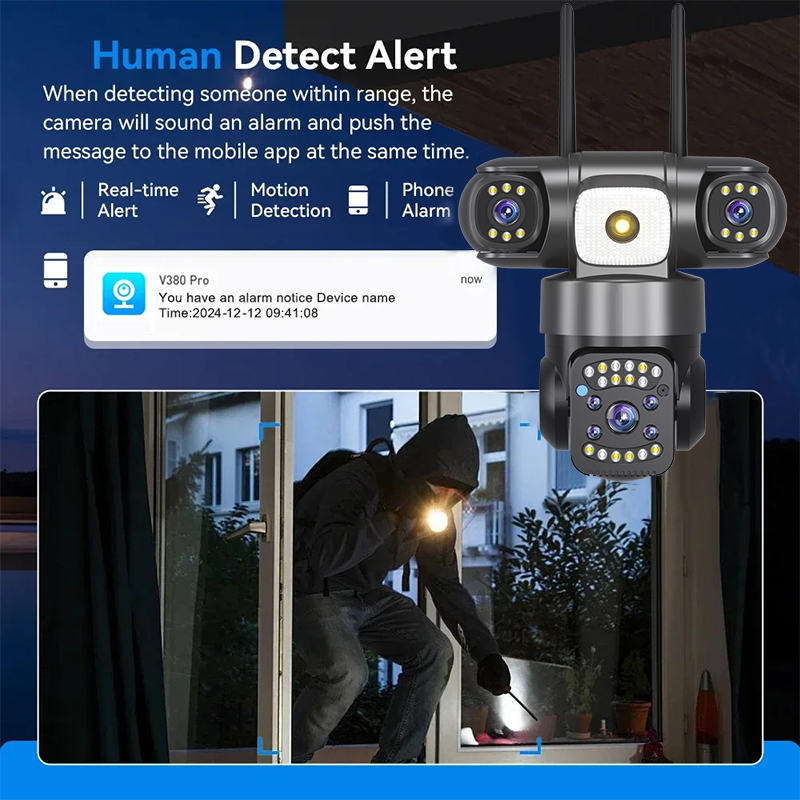 V380 Pro Camera Waterproof Outdoor Three Lens Hd 1080P Connect To Cellphone 360 Wireless Wifi Cctv