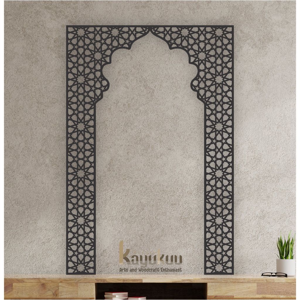 Kreasikayukuu Mihrab Mushola Minimalis Dekorasi Hiasan Dinding Mushola Cutting Plywood 3mm