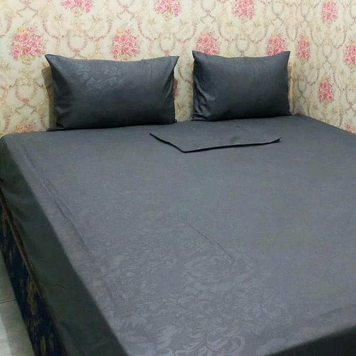 Sprei Polos Embos Abu Tua Grey Bunga Size 180X200 160X200 120X200 90 100 140 200 Set Sarung Bantal Guling Tali Karet Sud