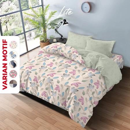Best Seller - Kintakun Lite Bedcover Set Fitted 160 X 200 / 180 X 200 Minimalis Bunga Microfiber 20 Cm Sarung Bantal 2