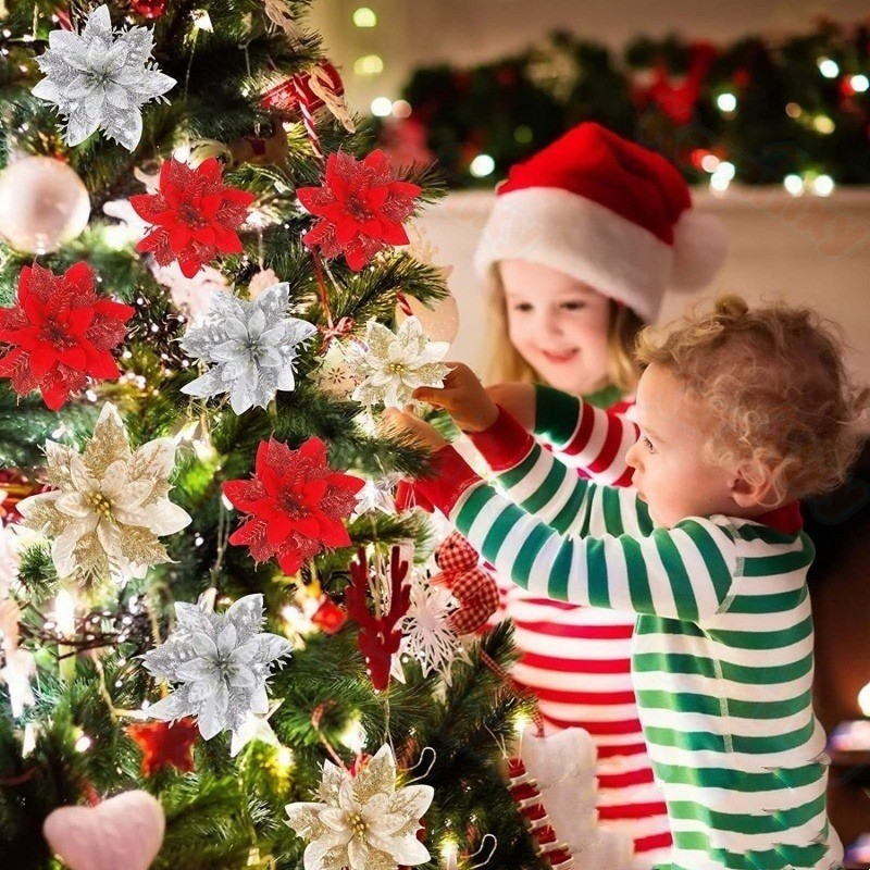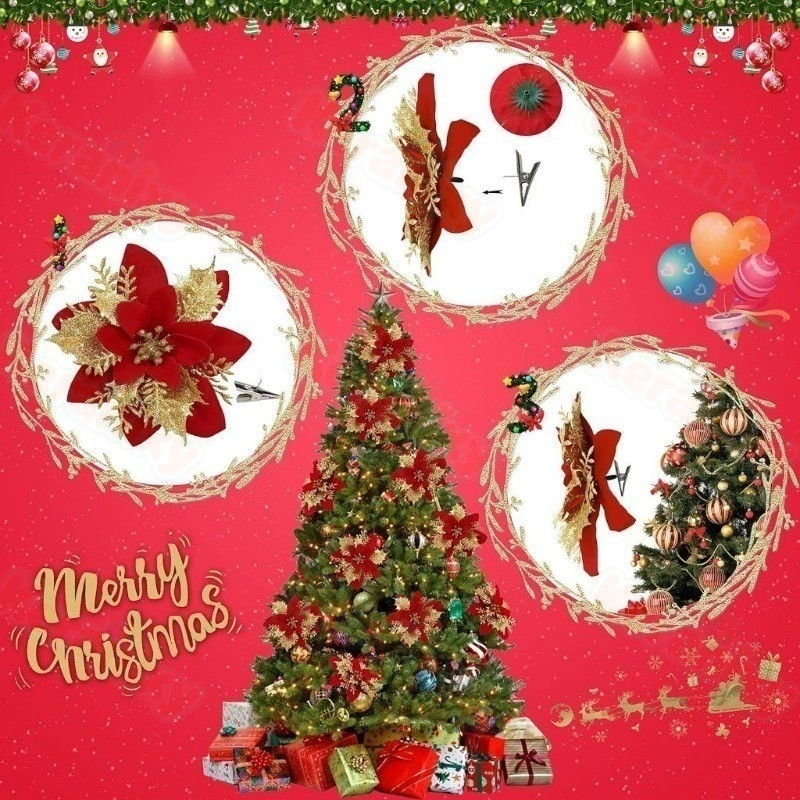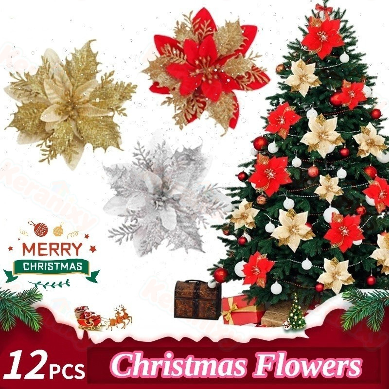 Keranixy 12PCS Hiasan Bunga Kastuba Poinsettia Gantungan Hiasan Dekorasi Ornamen Pohon Natal Christmas Ornamen Natal Untuk Pesta Natal