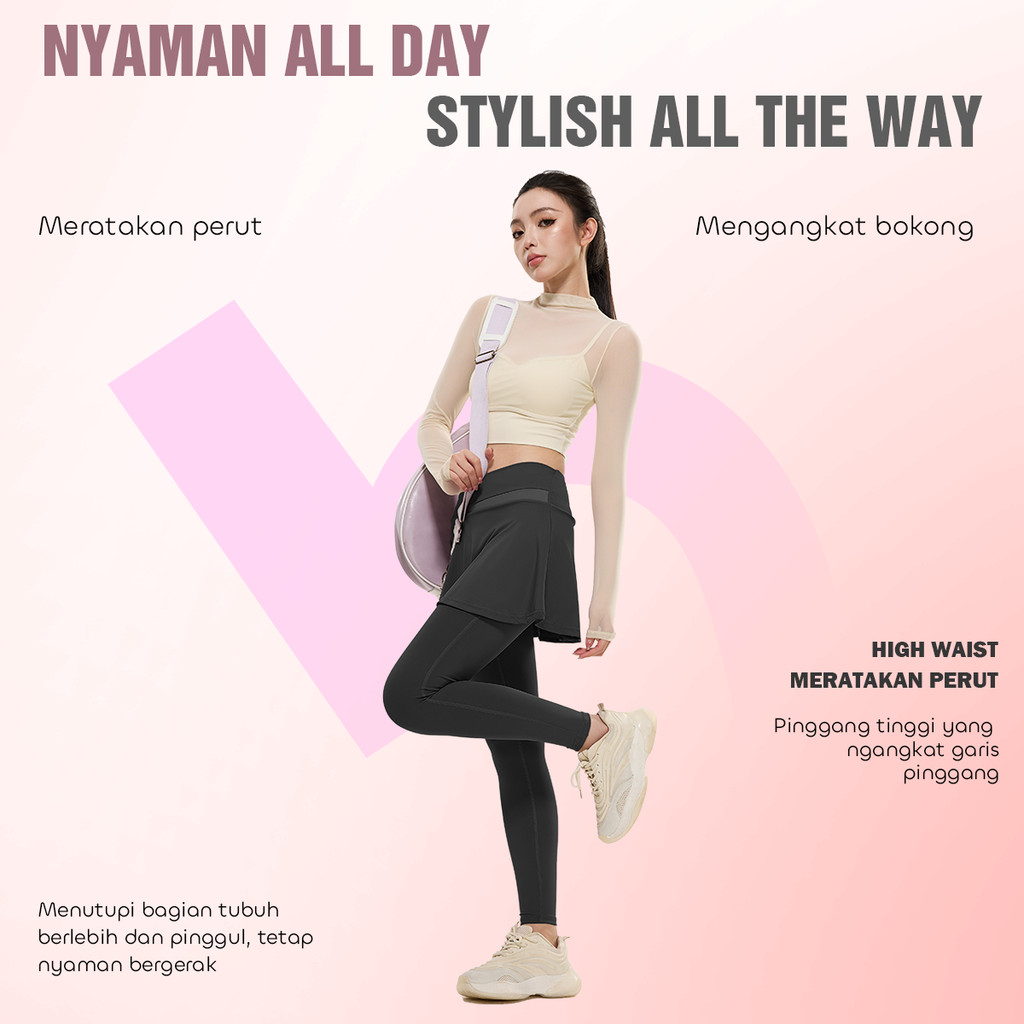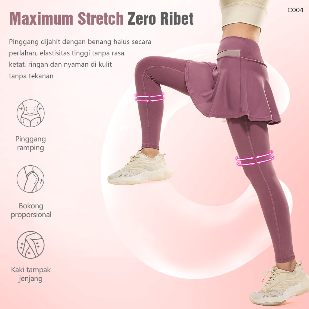 Celana Rok Wanita High Waist | Legging 2 Lapis Untuk Yoga/Lari/Badminton (C004/Ck001)