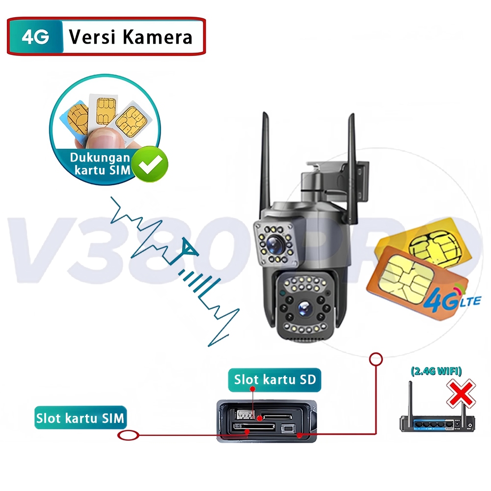 V380 Pro Cctv Wifi 4K 8Mp 4G Sim Kamera Ptz Ip66 Tahan Air Outdoor Lensa Ganda Di Luar Ran
