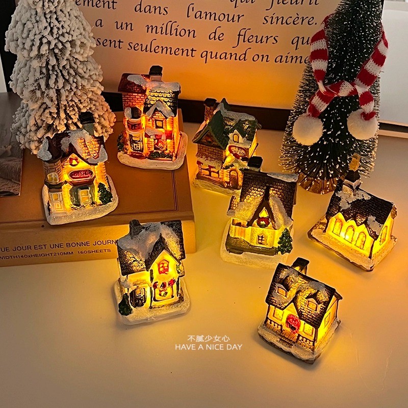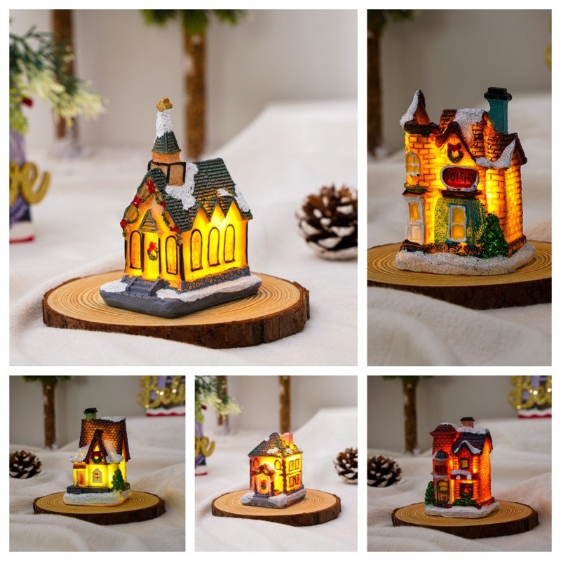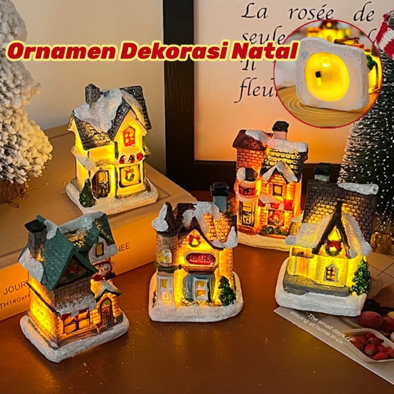 Hiasan Pohon Natal LED Resin House/Christmas Xmas Resin House/Ornamen Dekorasi Natal