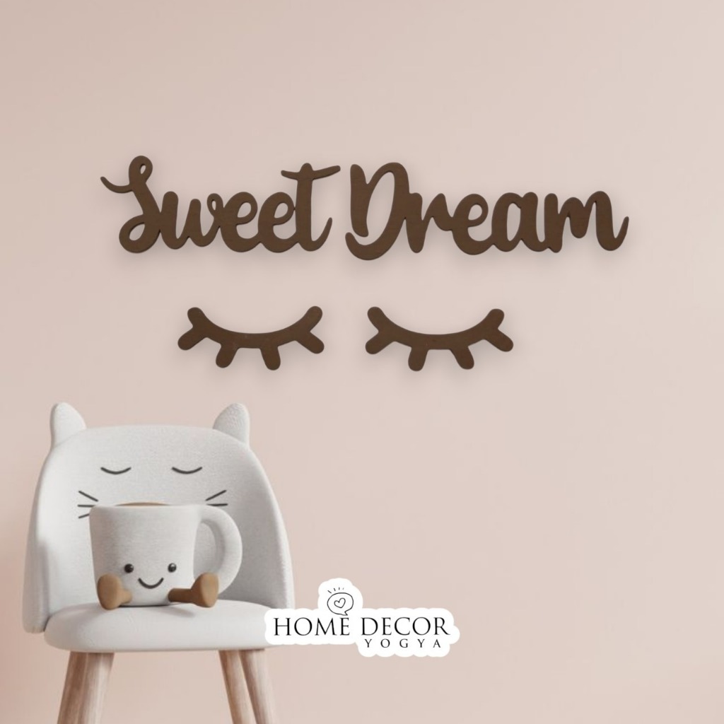 Hiasan Dinding Dekorasi "Sweet Dream + Sleep Eyes" Laser Cutting triplek 3 mm