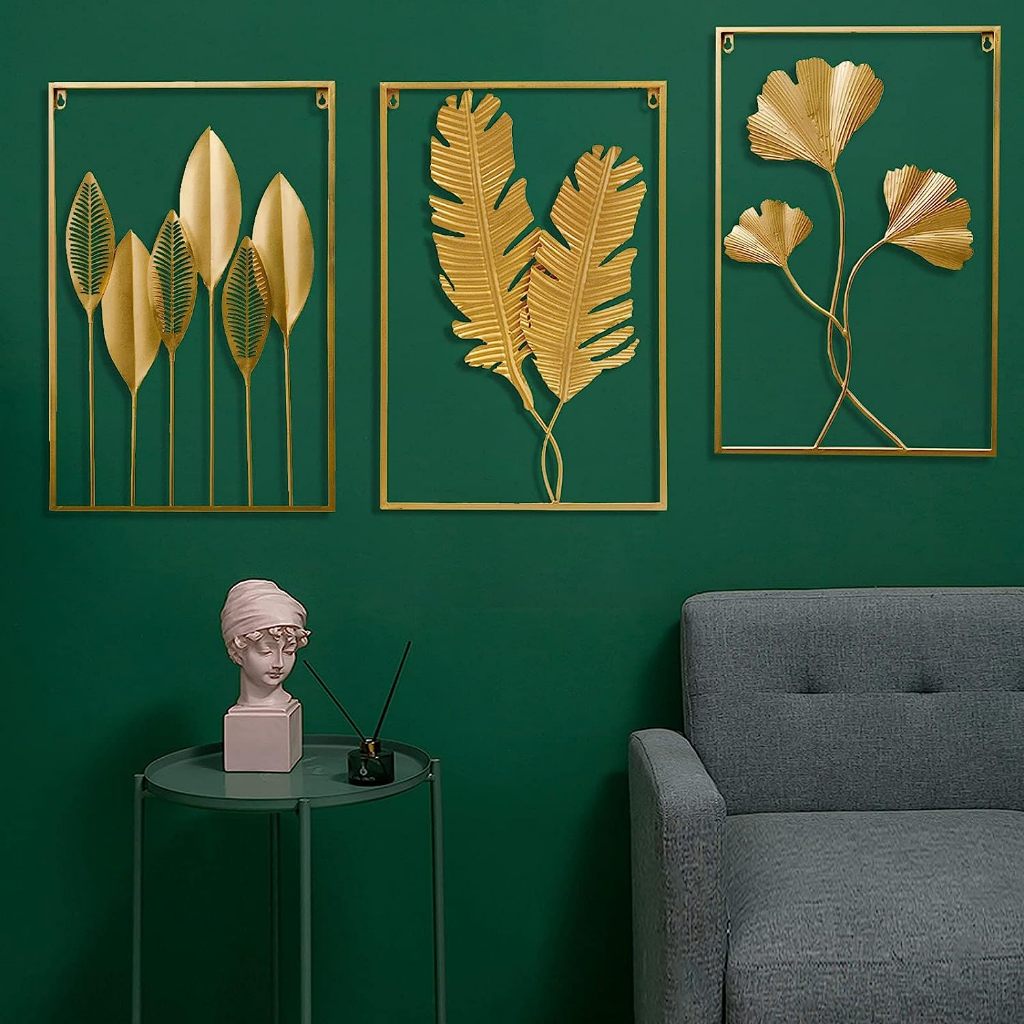 OPTIVIA Hiasan Dinding Besi Metal Metal Leaf Wall Art Decor /Modern living room wall decoration metal leaf wall /Pajangan Dinding Dekorasi wall Decor Besi Gold