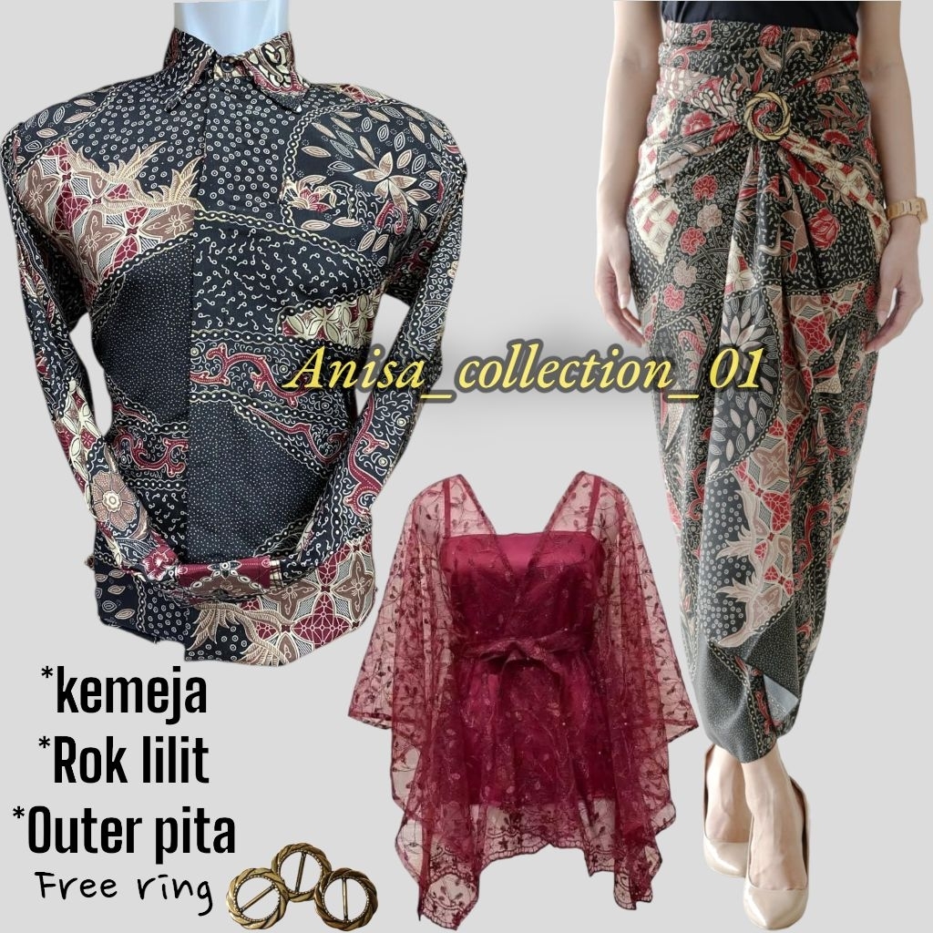 Couple Kemeja Batik Pria Rok Lilit Dan Outer Pita / Couple Kemeja Lengan Panjang Batik Terbaru 2024