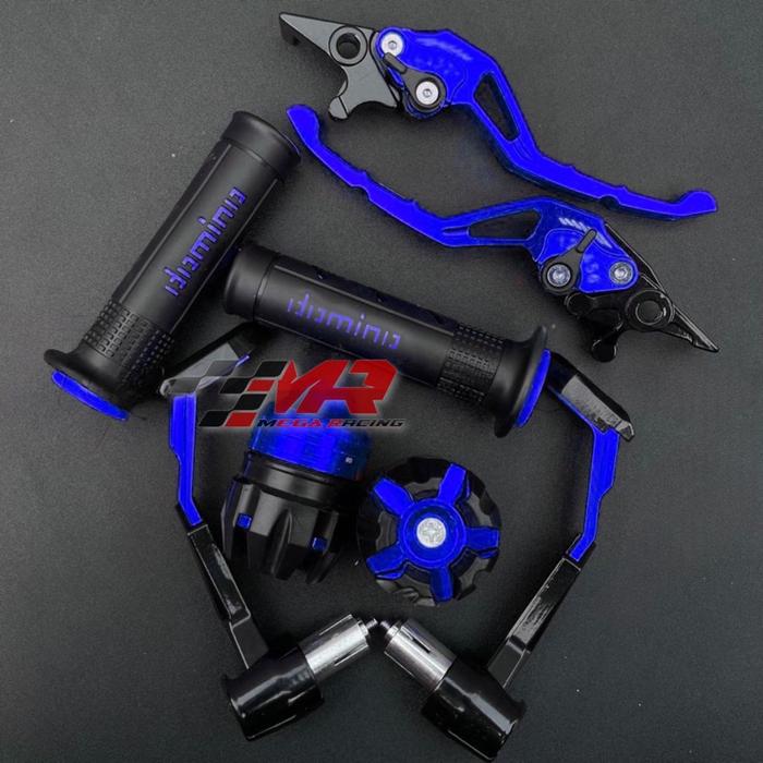 PAKET VARIASI MOTOR 4 ITEM - HANDLE JARUM CNC + PROGUARD ROBOT D1 + JALU AS RODA DEPAN + HANDGRIP SISIK KARET EMPUK UNIV