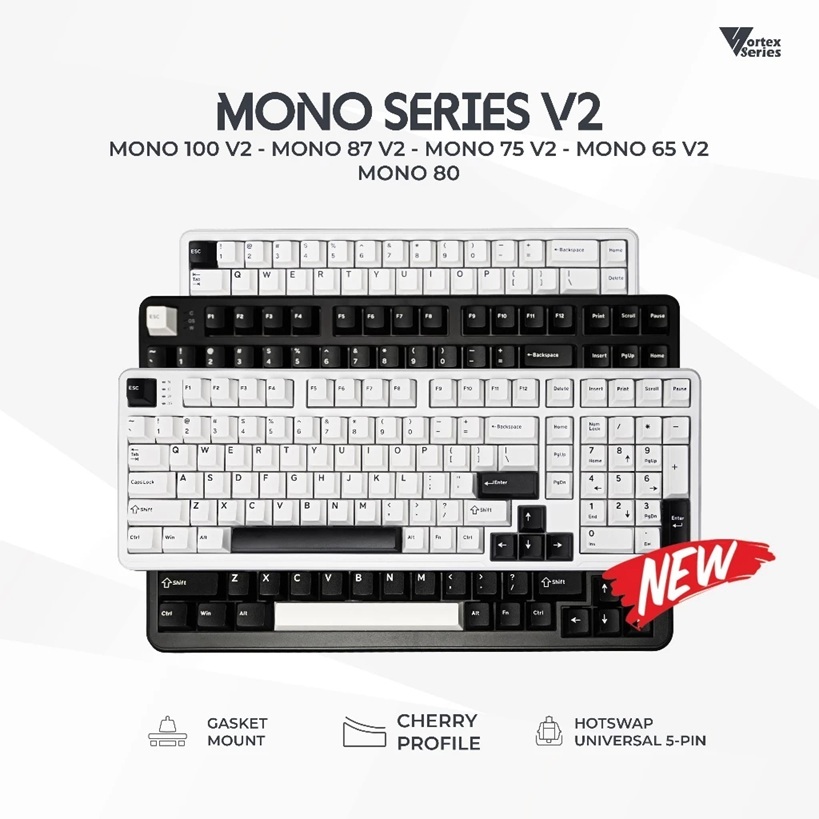 Vortexseries Mono Series V2 Mechanical Keyboard Mono 65 75 80 87 100 Keyboard Gaming Hotswapable