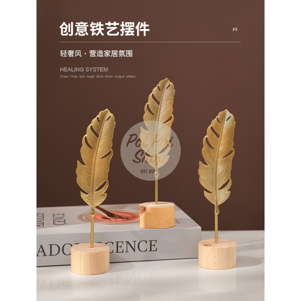 Pajangan Hiasan Rumah Nordic Daun Emas Gingko Mewah Base Kayu Ornamen Elegan Dekorasi Kamar Skandinavia Nordic Ruang Tamu Penyajian