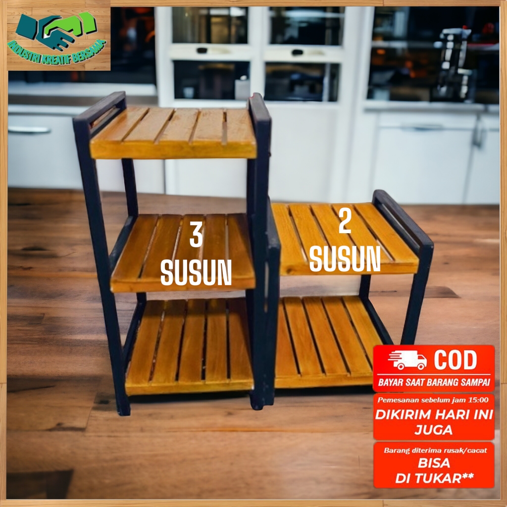 FULL FINISHING Rak Susun Kayu Minimalis Serbaguna / Rak Dispenser, Galon, Rice Cooker 2 Susun 3 Susun Serbaguna dari kayu solid