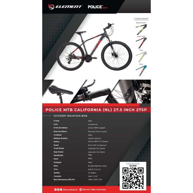 Terbaru SEPEDA GUNUNG MTB 27.5 INCH ELEMENT POLICE CALIFORNIA SHIMANO ALTUS 3x9 SPEED