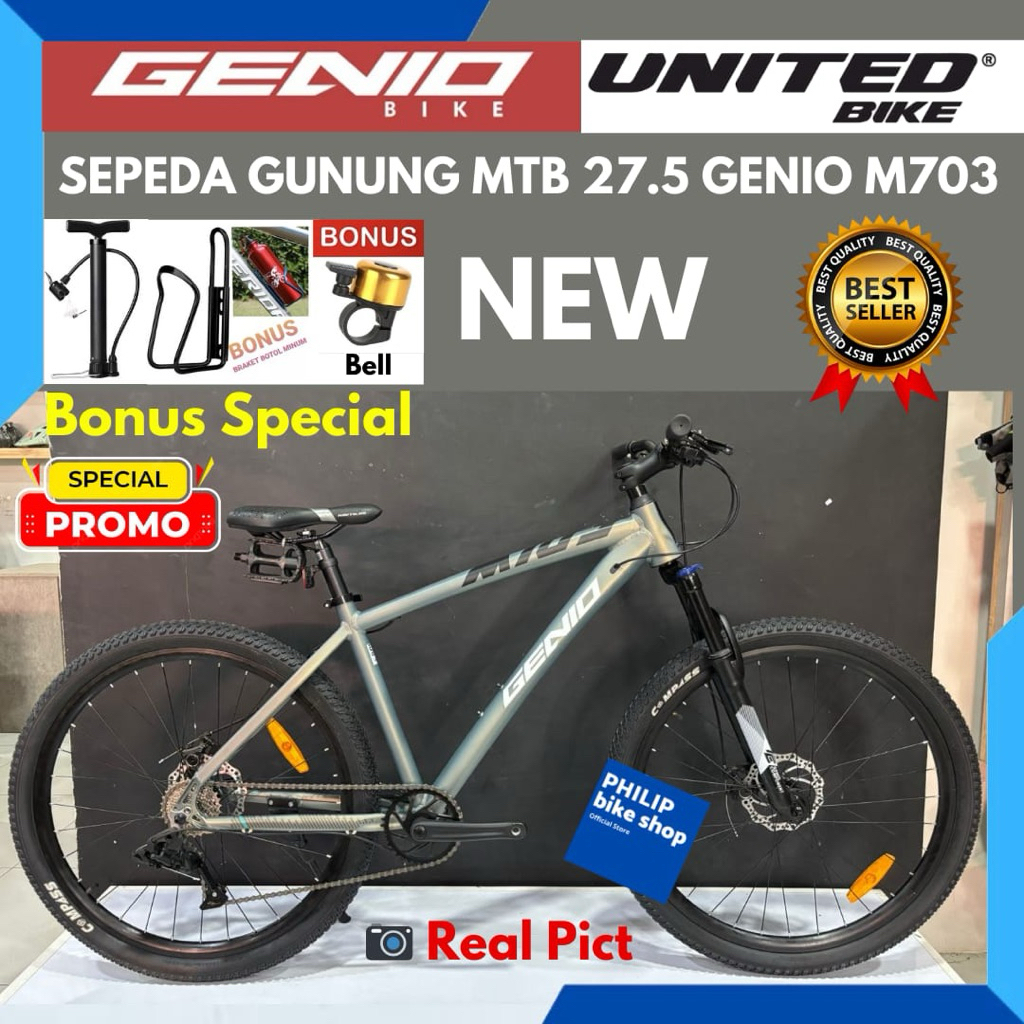 Terbaru Sepeda Gunung 27.5 MTB Genio M703 Frame Allumunium 10 Speed Terbaru