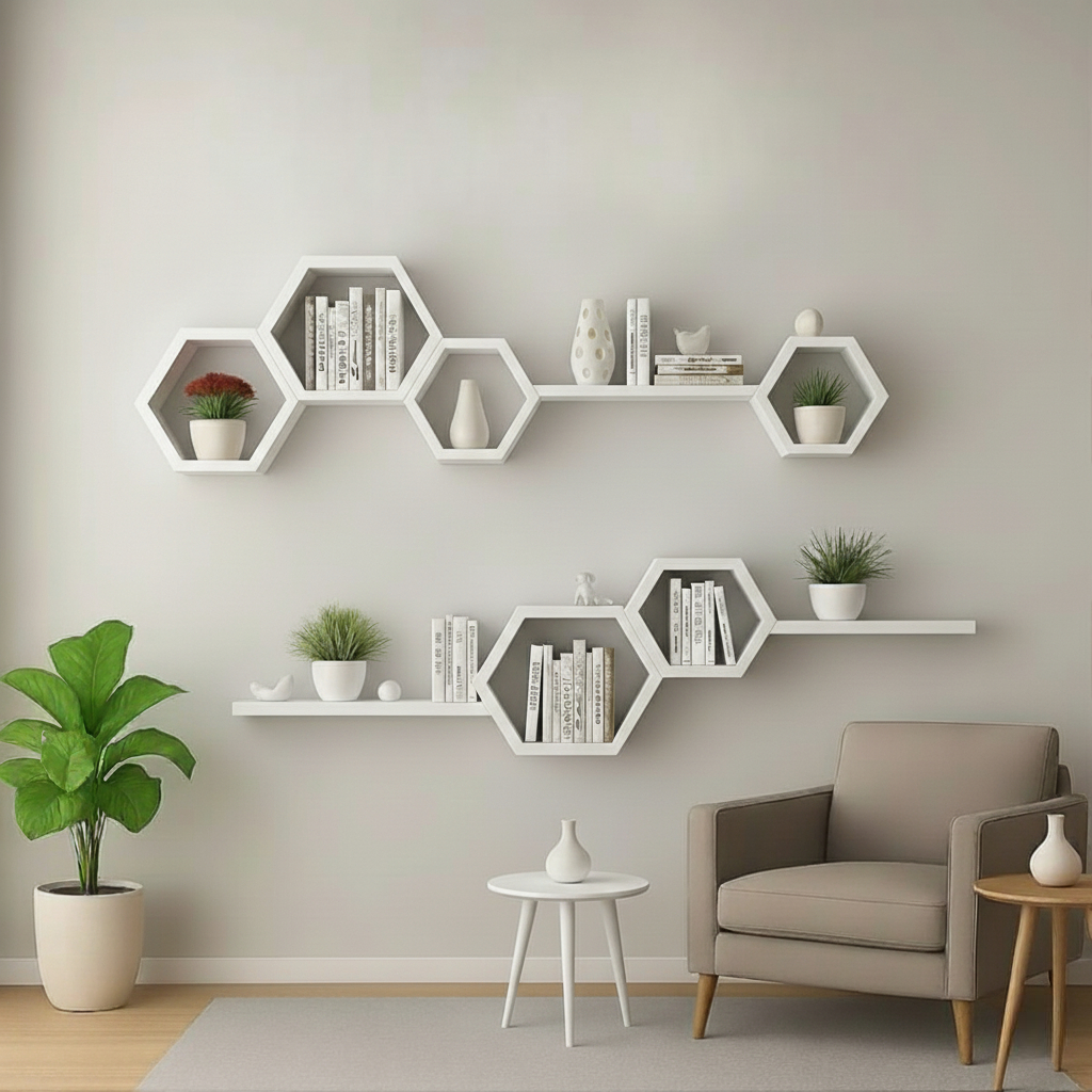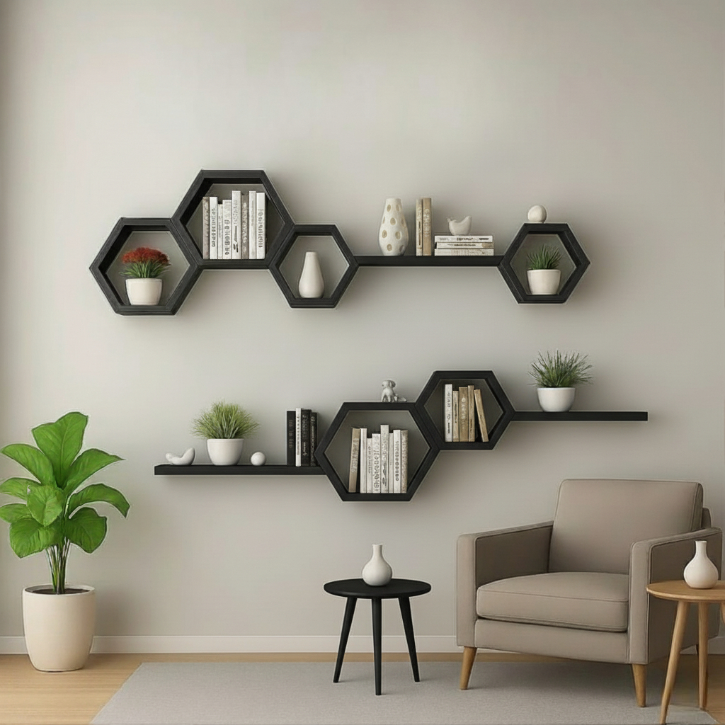 Rak Dinding 1 set hiasan hexagonal kayu jati belanda kamar tidur aesthetic pajangan ruang tamu