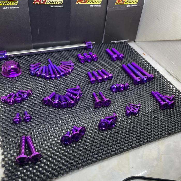 PAKET FULLSET MOTOR PCX 150 STANDAR TITANIUM ORIGINAL ANTI KARAT BAUT FULL PCX 150 TITANIUM - PURPLE BLUE, AS RODA