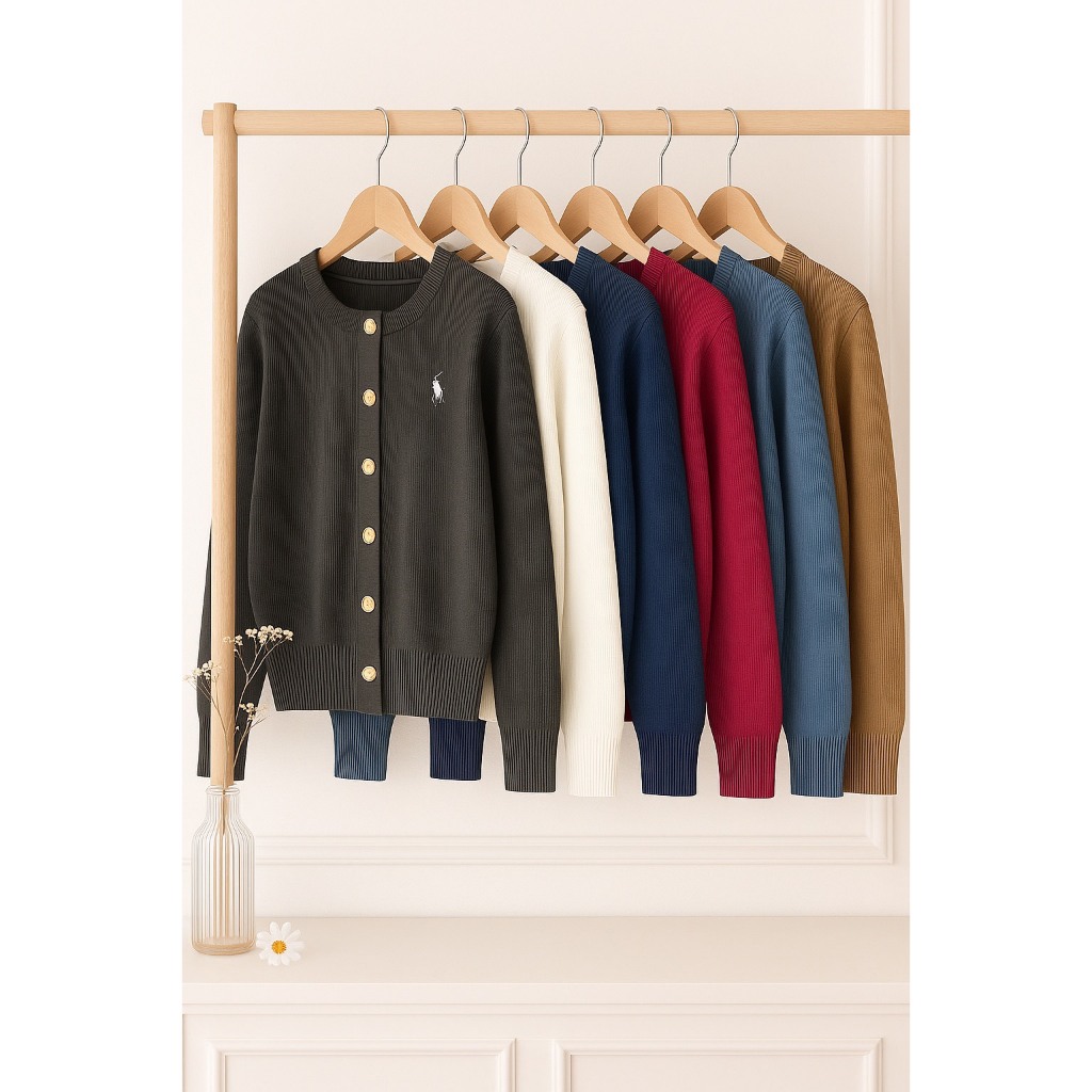 Dailyofprincess Canna Cardigan Rajut Wanita Knit Button Gold Logo Bordir Kuda