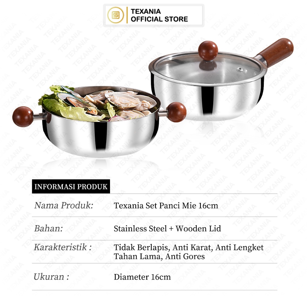 TEXANIA Set Panci Stainless Anti Lengket Diameter 16cm+FREE 1PCS TUTUP KACA