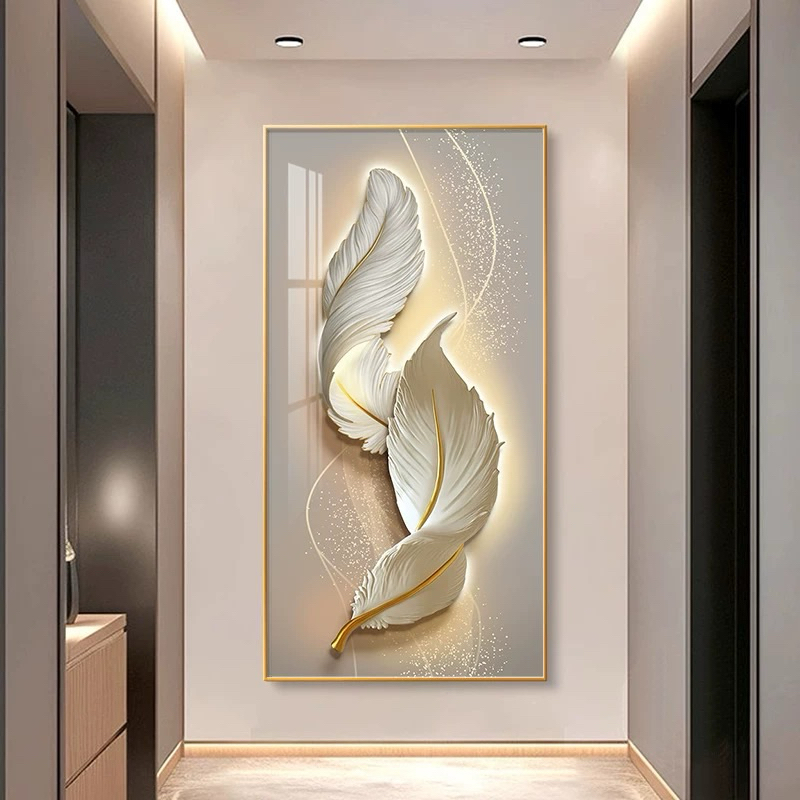 Lukisan Porcelain Painting Crystal 5D - Model Swan Feather Estetik - Wall Decor Hiasan Dinding Mewah.