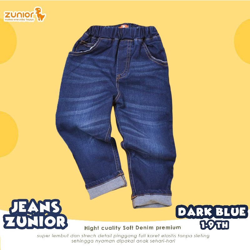 Celana Jeans Anak Laki-Laki dan Perempuan Zunior Premium Biru Tua 1-12 Tahun