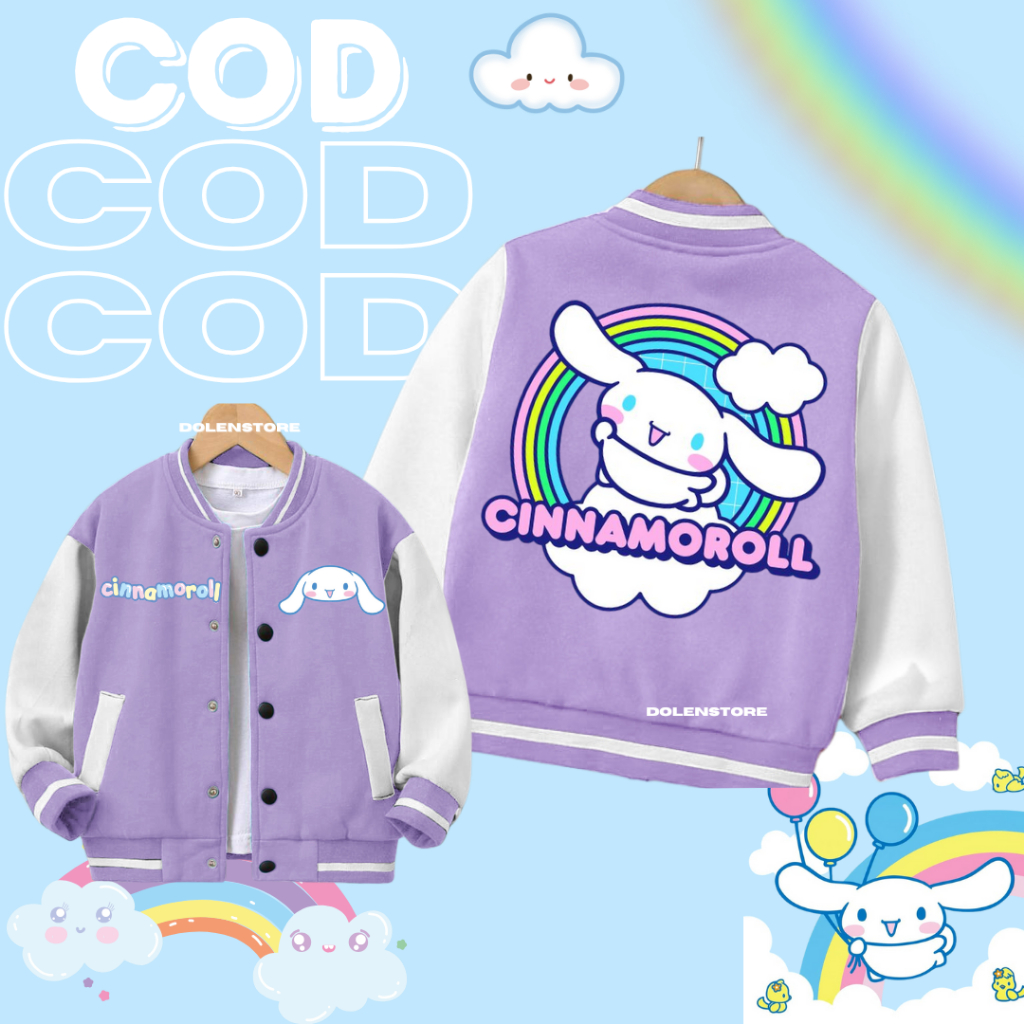 Jaket Anak CINNAMOROLL Baseball Perempuan Usia 2-12 Tahun